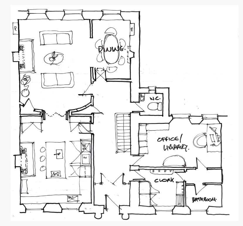 The reconfigured ground floor now offers a unified, light-filled living space that supports modern family life. By opening the kitchen and living room into a single flowing area, the design brings in natural light and improves functionality while respecting the fabric of the Category A listed building. The home now balances its Georgian heritage with a practical, contemporary layout.