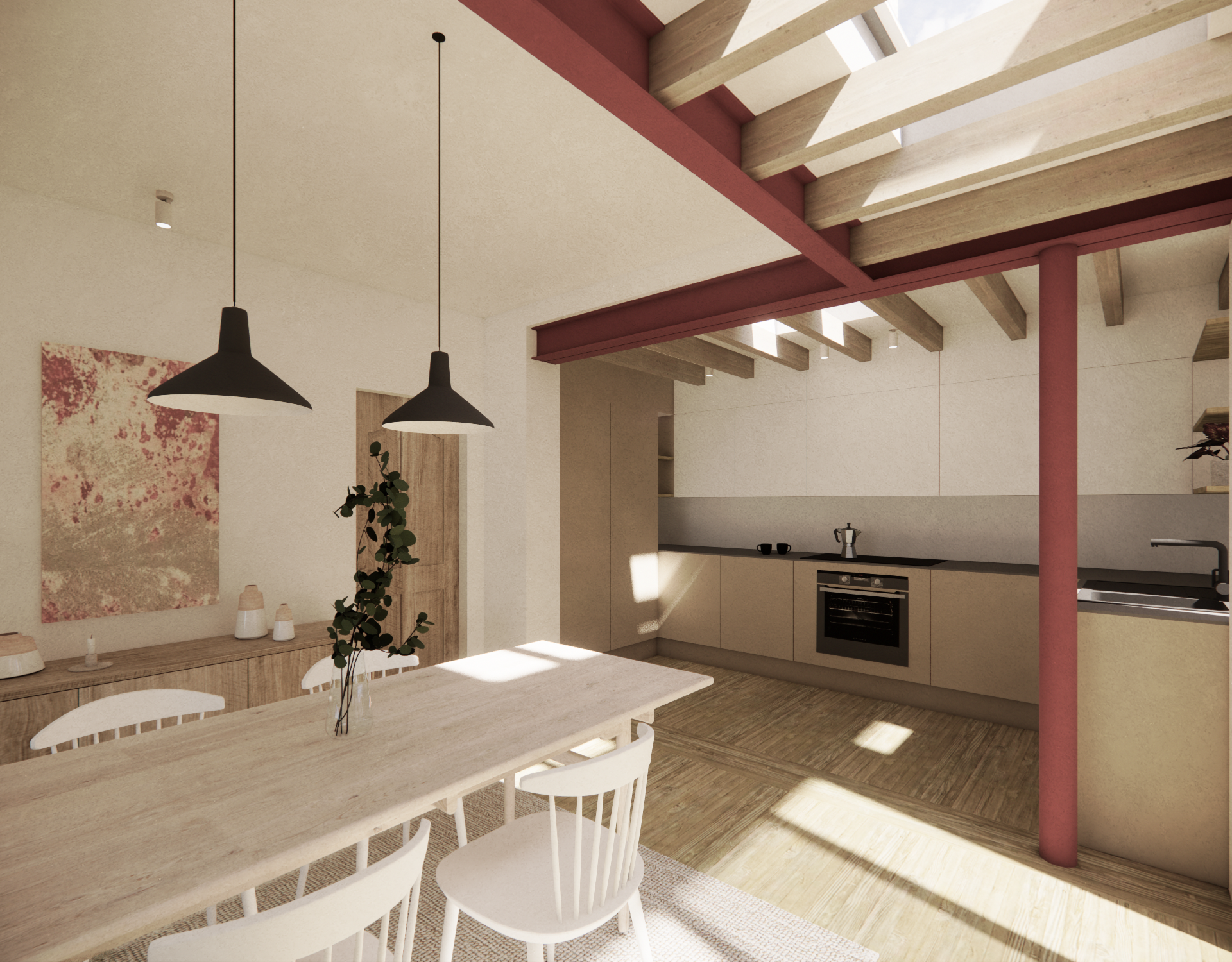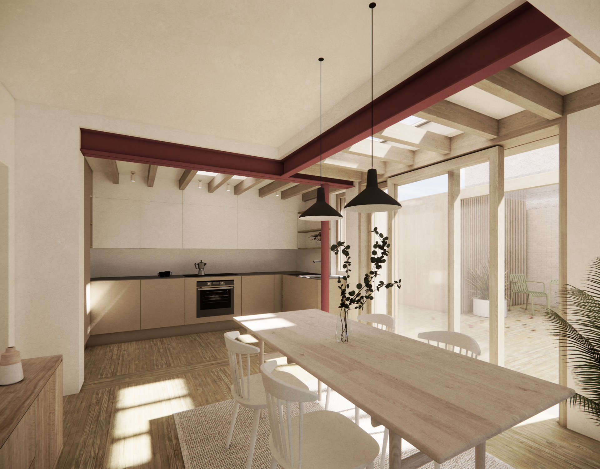 By removing a couple of internal walls (non-original) the space is completely opened up, giving a more generous and sociable space that improves the connection between the dining room and the outdoor terrace to give them a larger space for entertaining.